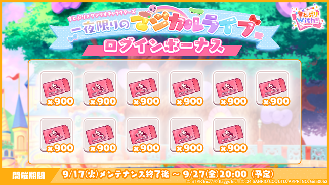 本日9月17日(火)より、「すとぷり×サンリオキャラクターズ 一夜限りのマジカルライブ 応援イベント ログインボーナス」を実施中です。