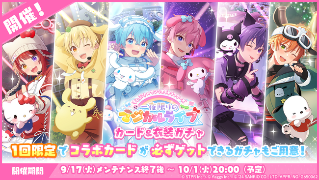 本日9月17日(火)より、新たな★3カードがピックアップ登場する「すとぷり×サンリオキャラクターズ 一夜限りのマジカルライブ カード&衣装ガチャ」が開催中です。
