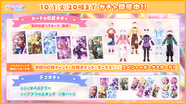 「すとぷり×サンリオキャラクターズ 一夜限りのマジカルライブ カード&衣装ガチャ」を開催!