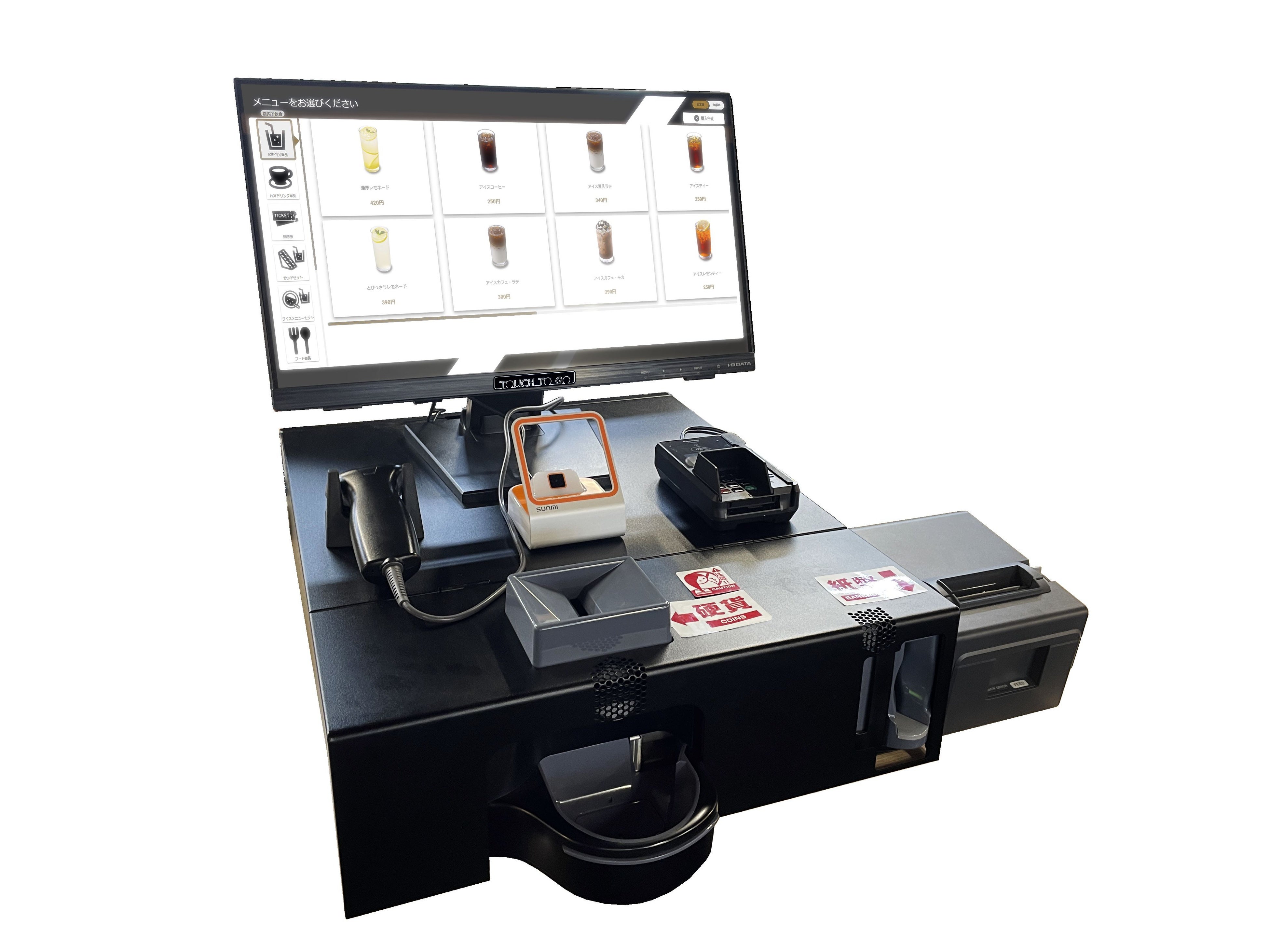 券売機、セルフレジ、セミセルフレジの1台3役をこなす多機能セルフレジ「TTG-MONSTAR」。レジ業務を担うことによりレジ人員を最大50%カット、自動レジ締め機能により閉店時の締め作業も不要。専用アプリによってどこでも売上管理、メニュー登録を可能にします。