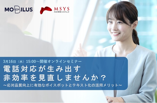 The Support Tech Companyとして顧客サポート支援のソリューションを開発・提供するモビルス株式会社(本社:東京都品川区、代表取締役社長:石井智宏)は、2022年3月16日(水)15:00〜丸紅情報システムズ株式会社と共催で、オンラインセミナー「電話対応が生み出す非効率を見直しませんか?〜応対品質向上に有効なボイスボットとテキスト化の活用メリット〜」を開催します。