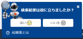 検索結果をクリックした後で、受講者が「役に立った」「役に立たなかった」を入力する画面が表示されます。受講者の評価をデータベースに蓄積し、次回以降の検索に反映する仕組みが搭載されています。これにより、より検索の精度が高くなります。