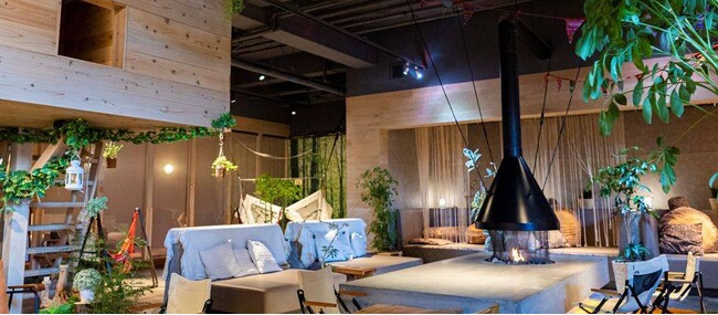 緑に彩られた館内にはハンモックが並び、室内にいながらアウトドア気分を味わえるスーパー銭湯です。バラエティ豊かなお風呂のほか、ゲームコーナーやカラオケ付きレンタルルーム、すべり台があるプレイエリアなど至れり尽くせり。屋根付きのテラスでは、手ぶらOKのBBQも楽しめます。(予約制)