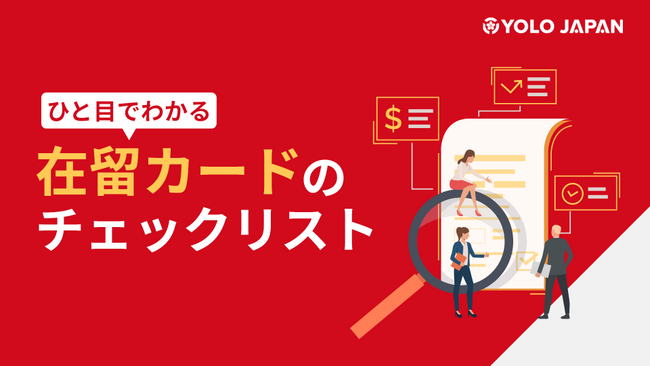 226の国と地域出身25万人以上の在留外国人が登録している日本最大級のメディアを運営する、株式会社YOLO JAPAN(代表取締役:加地太祐、大阪本社:大阪市浪速区、以下「YOLO JAPAN」)は、本日「ひと目でわかる 在留カードのチェックリスト」を公開しました。