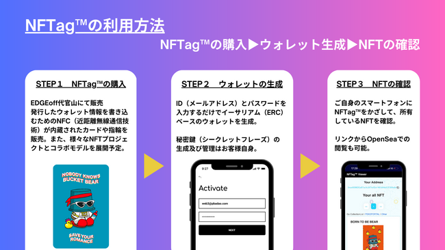 本業務提携により、両社は、NFTag™を通じて、NFTを購入することが初めての方でも簡単にウォレットの開設とNFTの購入ができる仕組みを提供いたします。