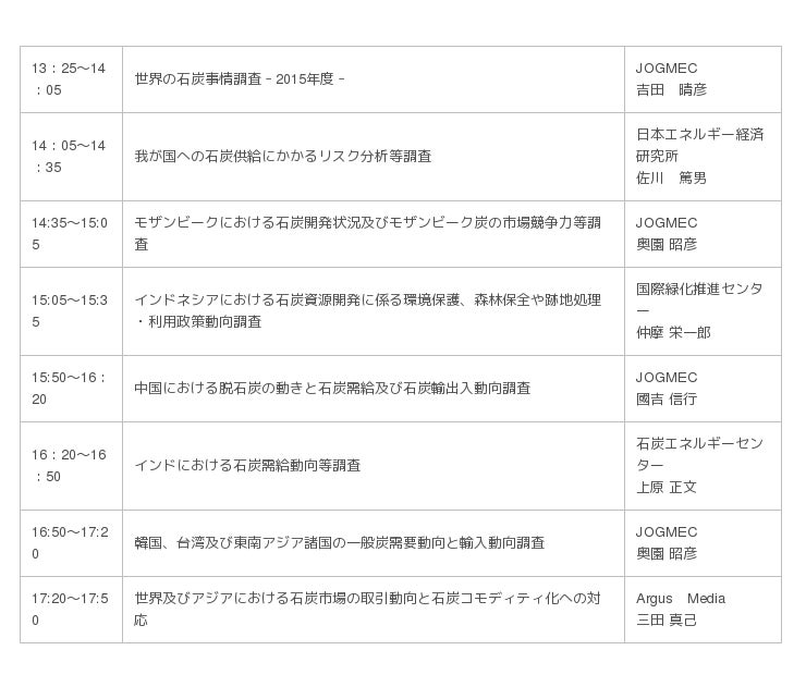 JOGMECは、今後も石炭業界関係者に有益な情報を提供したいと考えており、今後も、メールマガジン「石炭通信」やウェブサイトを通じて各種情報の提供や報告会等のご案内をしていく所存でありますので、よろしくお願いいたします。