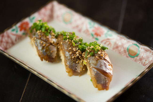 タレとゴマの風味が引き立てるあじの甘味と旨味、鮮度のいい身の締まったプリプリ食感が楽しめます。