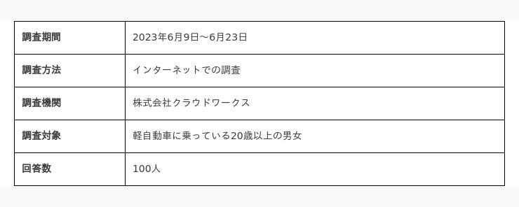 軽自動車に関するアンケート調査概要