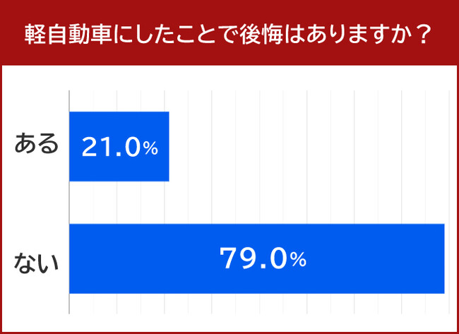 軽自動車を選択して後悔していることがあるかを質問すると、21.0%の方が「ある」と回答しました。