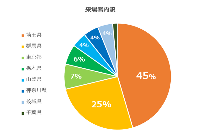 埼玉(45%)、群馬(25%)、東京(7%)、栃木(6%)であった。