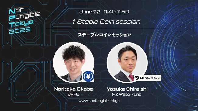 日本円ステーブルコイン『JPYC』を取り扱うJPYC株式会社(東京都千代田区、代表取締役:岡部 典孝)は、6月22日、東京国際フォーラムにて開催されるNFTカンファレンスイベント「Non Fungible Tokyo 2023」に登壇します。代表の岡部がステーブルコインに関するテーマで講演します。
