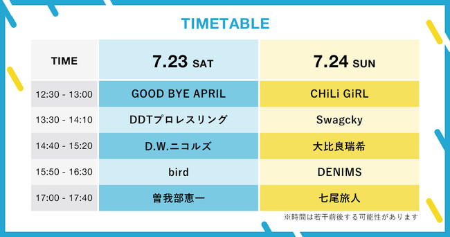 曽我部恵一、七尾旅人、DENIMS、大比良瑞希、bird、D.W.ニコルズ、DDTプロレス等10組が決定!