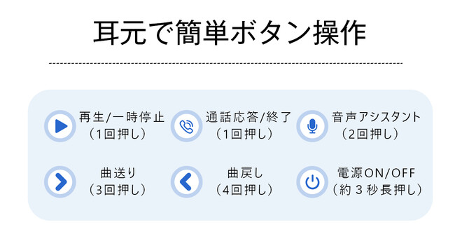 音楽の再生/停止はもちろん、/曲送り/着信の対応などの操作を1つの物理ボタンで行うことができます。