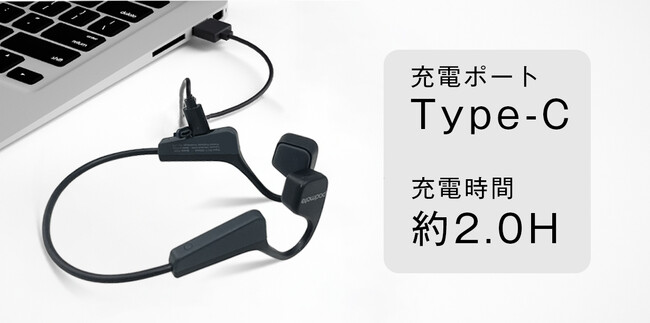 付属のType-C充電ケーブルでお手元のパソコンやモバイルバッテリーなどのUSBポートから手軽に充電できます。