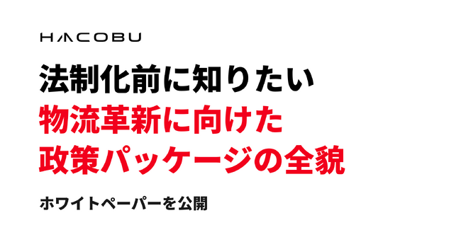 株式会社Hacobu(ハコブ、本社:東京都港区、代表取締役社長CEO 佐々木太郎、以下「Hacobu」)は、『法制化前に知りたい、物流革新に向けた政策パッケージの全貌』(全16ページ)のホワイトペーパーを公開いたしましたのでお知らせします。