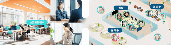 オフィス等に設置した位置情報端末(ビーコン等)とovice Goとの連携によりoviceスペース上で「社員の所在確認」が可能な仕組みである「位置情報表示」、多拠点間やフロア間、オフィスとoviceといったあらゆる空間をつなぎ、離れている人と気軽につながれる仕組みである「窓」。外出中などoviceに常時接続が難しい時にもoviceとつながるスマートフォンアプリ「ovice Go」などを提供しています。