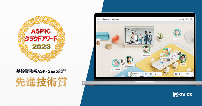 oVice株式会社(本社:石川県七尾市、代表取締役CEO:ジョン・セーヒョン)は、当社が提供するバーチャルオフィス「ovice(オヴィス)」とあらゆる空間をつなぐソリューション「ovice Hybrid Solution」が、一般社団法人日本クラウド産業協会(ASPIC)が主催し総務省等が後援する「第17回 ASPICクラウドアワード 2023」の基幹業務系ASP・SaaS部門において、先進技術賞を受賞したことをお知らせします。