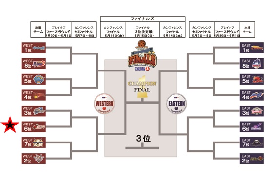 ※このプレイオフファーストラウンドに勝ち上がった場合は、【琉球ゴールデンキングズvs金沢武士団】の勝者との対戦となる「カンファレンスセミファイナル(5/7[土]、5/8[日]開催)」へ進出します。