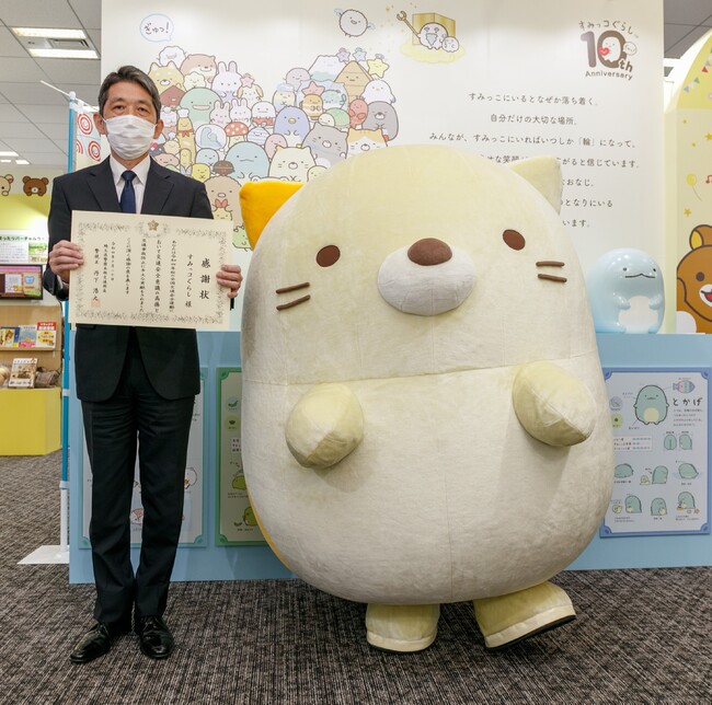 感謝状は「すみっコぐらし」を代表して「ねこ」に贈られました。