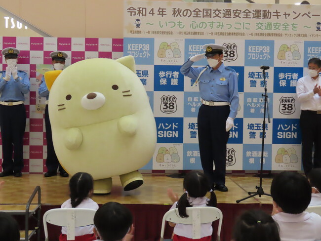 先日9月20日には、イオンモール与野店にて「令和4年秋の全国交通安全運動キャンペーン」のイベントが行われ、「すみっコぐらし」を代表して「ねこ」が登場しました。