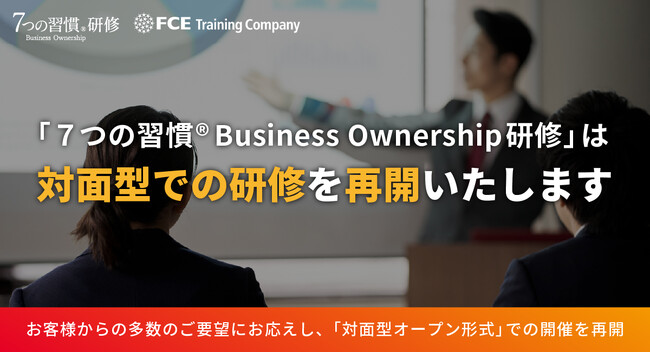 定額制オンライントレーニングサービス「Smart Boarding」や法人向け「7つの習慣(R)研修」を提供する、株式会社FCEトレーニング・カンパニー(本社:東京都新宿区 代表取締役:荻野純子)は、「7つの習慣(R) Business Ownership研修」において、お客様からの多数のご要望にお応えし、「対面型オープン形式※1」での開催を再開することをお知らせいたします。