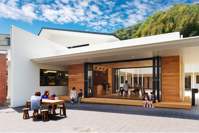 季節によって、園外でも園内でも、色々な活動ができることが中央こども園の特徴です。夏は瀬戸内海まで出かけたり、春と秋にはバスで山に出かけて筍堀りやどんぐり拾いをして自然の中で活動します。園舎もこだわりが詰まっていて、子ども達が夢中になれる仕掛けがたくさん!ボルダリングできる壁やちょっとした隠し通路もあるんですよ。中でもガラス張りのカフェが園の自慢です。クラスごとに交代で給食をカフェスペースで食べていて、外を見ながらいつもと違う景色の中で食べる給食はみんなの楽しみの一つです。私たちは、子どもたちが自分で考え、生きる力を養えるように、自分で遊びを見つけ自己肯定感を高めていくような保育を大切にしています。留学生のお友達も、この園で新しい遊びや得意なことを見つけてくれたら嬉しいです。