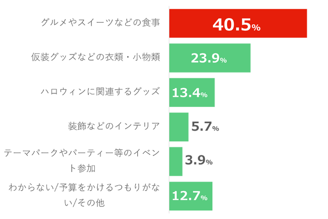 ハロウィンにかける予算はグルメやスイーツなどの食事が最も多く、40.5%が回答。