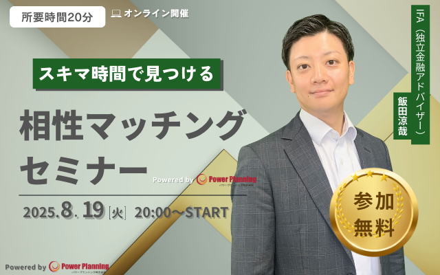 8月19日(火) 20時より、スキマ時間を活用して自分に合ったIFAを探すことができる、飯田涼哉講師との「相性マッチングセミナー(無料)」を開催いたします