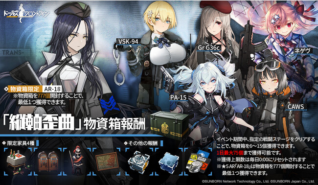 株式会社サンボーンジャパンは、スマホ向け戦略型シミュレーションゲーム『ドールズフロントライン(以下、「ドルフロ」)』において、本日9月15日(金)メンテナンス後より開催の大型イベント、「縦軸歪曲」の追加情報をお知らせいたします。