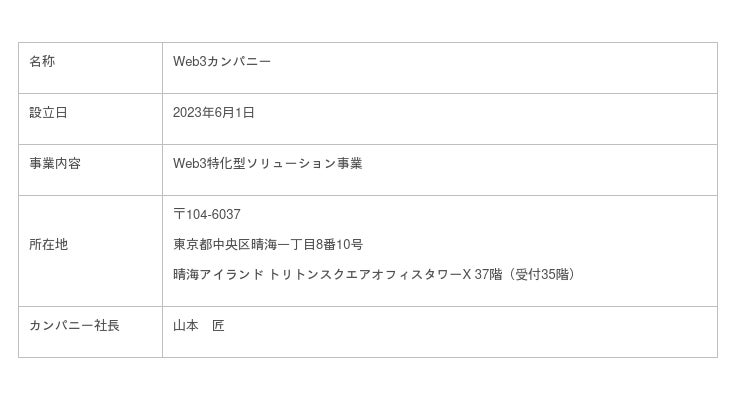 また、企業の事業活動によるさまざまな社会課題の解決や、持続可能な経済モデルを前提にした心豊かな社会の創造へ貢献するためにも、Web3領域への参入は不可欠と考えております。