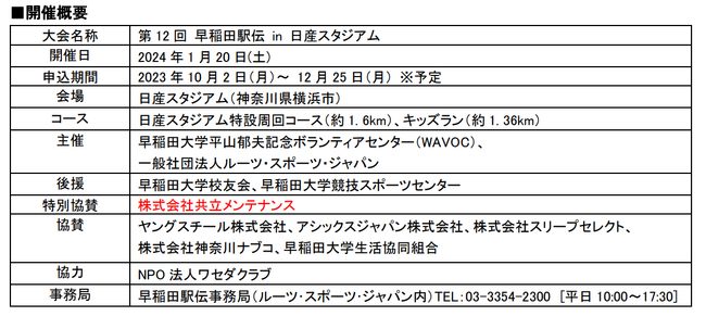 共立メンテナンス「第12回早稲田駅伝in日産スタジアム」に特別協賛