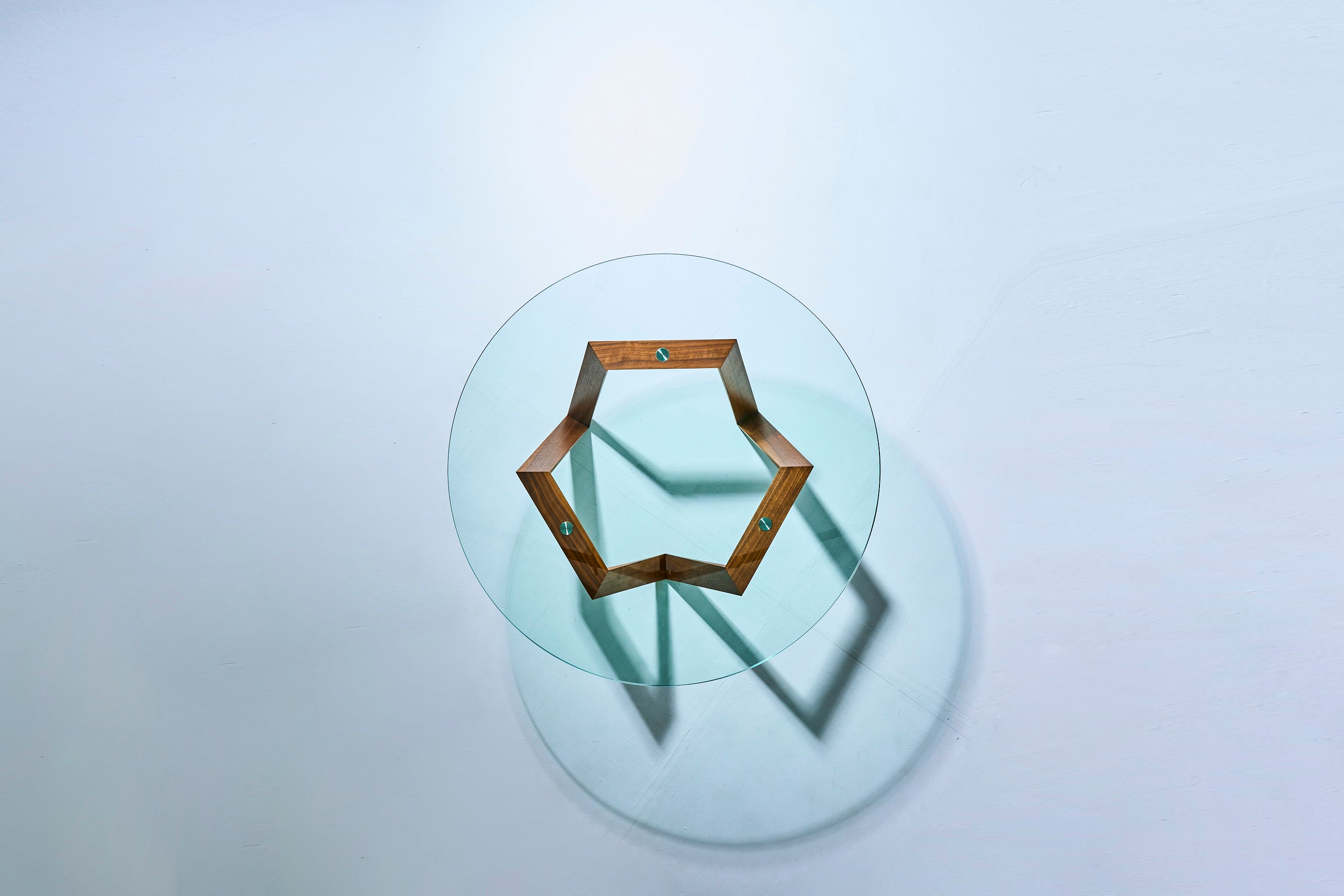無垢材から削り出して作られた、六角形を歪曲させた、モクレンが開花したイメージデザインのリビングテーブルです。
