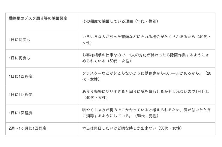 質問11:その頻度で勤務地のデスク周りや共用部を除菌している理由を教えてください。