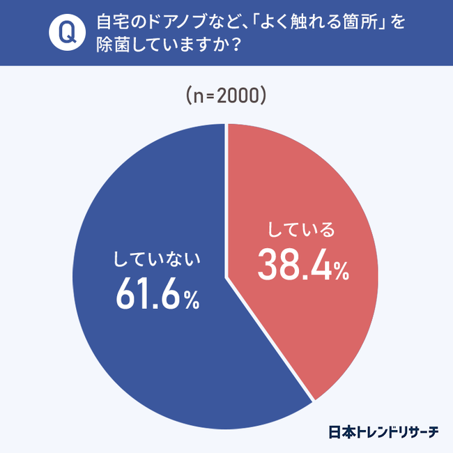 まず、自宅のドアノブなど「よく触れる箇所」の除菌をしているか聞きました。