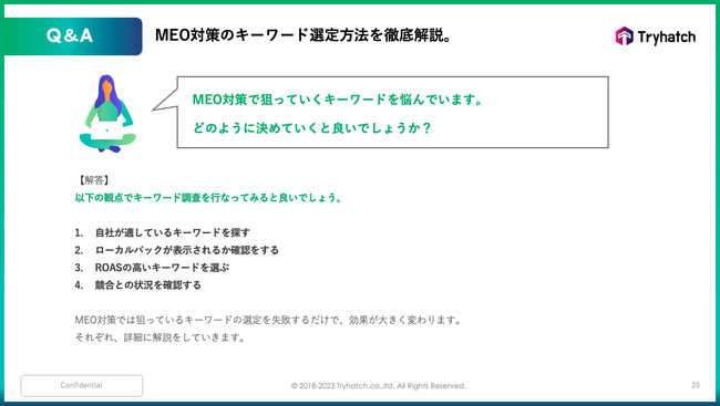 当月のFAQ、MEO対策の効果を左右するキーワード選定について回答をしています。