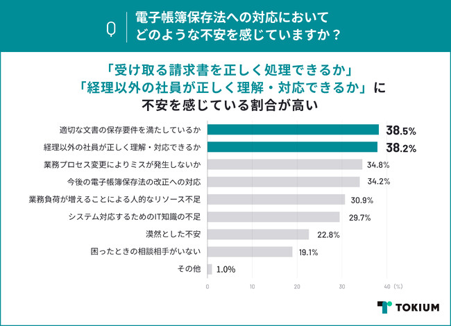 「受け取る請求書を正しく処理できるか」「経理以外の社員が正しく理解・対応できるか」に不安を感じている割合が高い