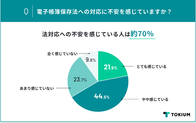 約70%近くが電子帳簿保存法への対応に不安を感じている