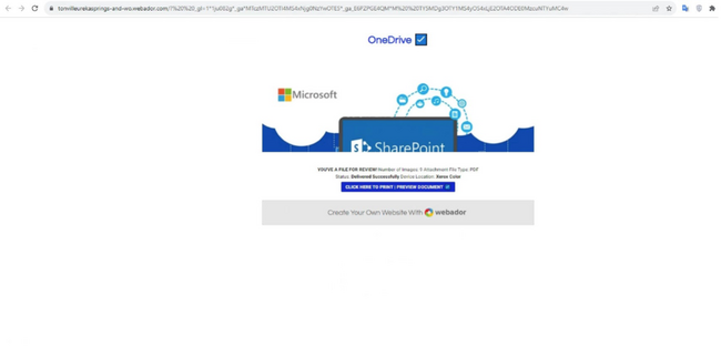 コンテンツはOneDriveに似たページですが、URLはDropboxにホストされています。 "ドキュメントを取得"をクリックすると、ユーザーは最終的に、資格情報を収集するためのページに誘導されます。