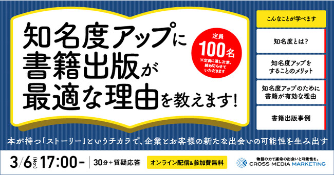 【3月6日(月)オンラインセミナー開催】知名度アップに書籍出版が最適な理由を教えます!