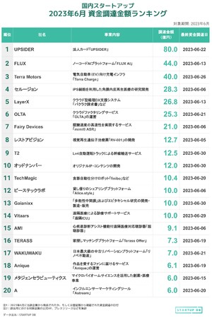 【STARTUP DB】調査結果 国内スタートアップ資金調達金額ランキング(2023年6月)