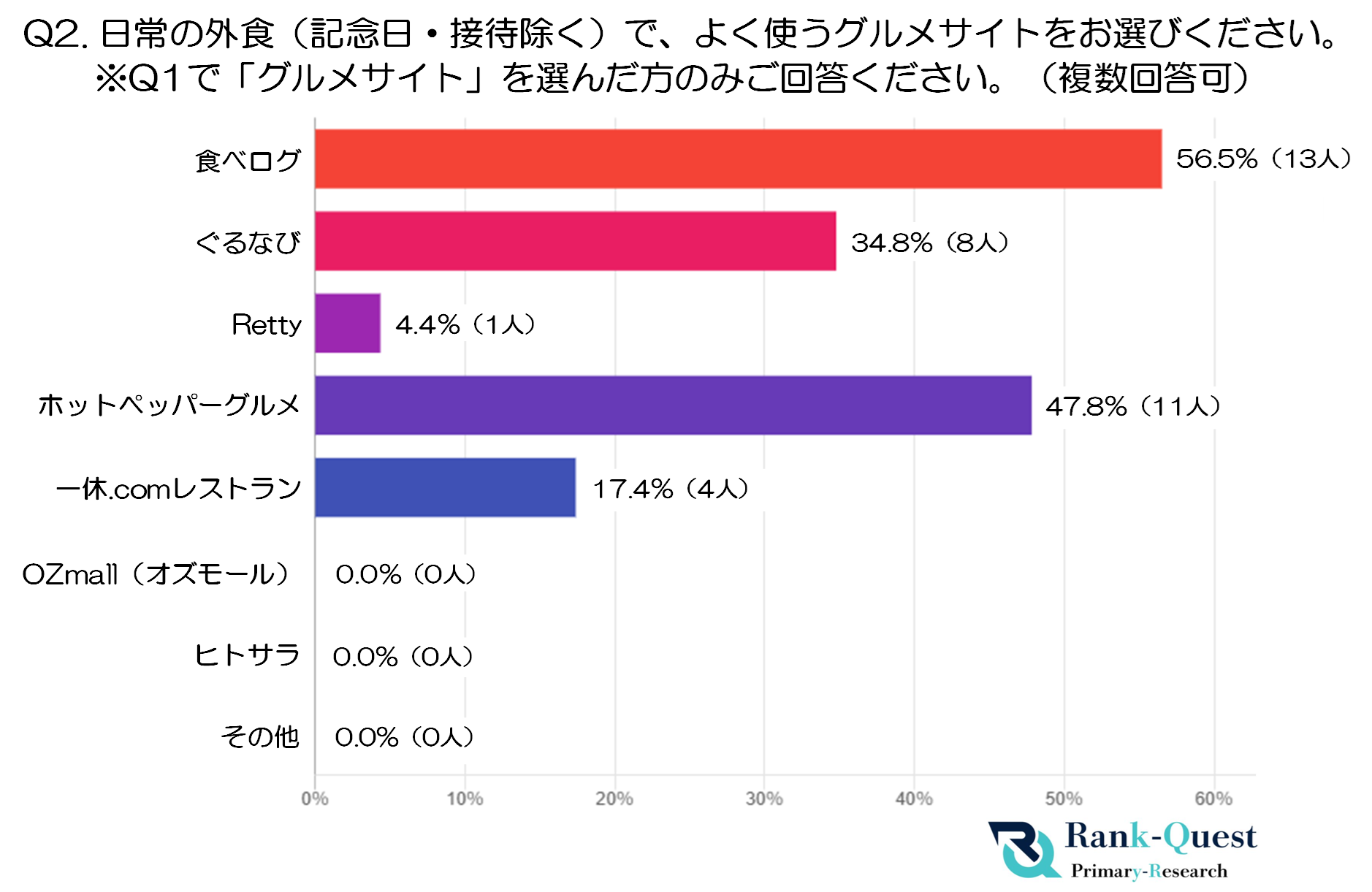 [画像2: https://prcdn.freetls.fastly.net/release_image/140336/285/140336-285-1d310c33ae3c8530867d78bb1a8a94ad-1878x1221.png?width=536&quality=85%2C75&format=jpeg&auto=webp&fit=bounds&bg-color=fff ]注2:本設問は複数選択式ですが選択肢は2つまでに制限しています。これにより、日常の外食でよく使うグルメサイトをより明確に把握できるようにしています。