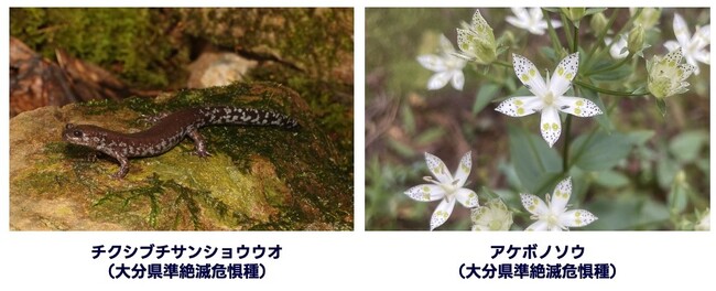 田島山業の森林には、大分県準絶滅危惧種である「チクシブチサンショウウオ」や「アケボノソウ」などが生息しており、森林の整備を通じて、生物多様性の保全を進めていきます。なお、田島山業は環境省の「30by30(※5)」推進プログラムにおける「自然共生サイトの所有者・管理者」であり、LINEヤフーはその「支援者」として正式に認定されています。