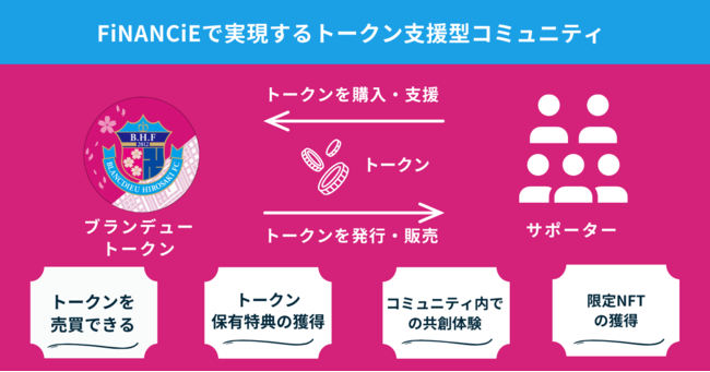 ブランデュー弘前FCのトークンは”ブランデュートークン”としてFiNANCiE上で発行されます。トークンを購入いただいた方々は、運営の一部に携われる投票企画への参加や特典抽選などへ応募いただくことができます。