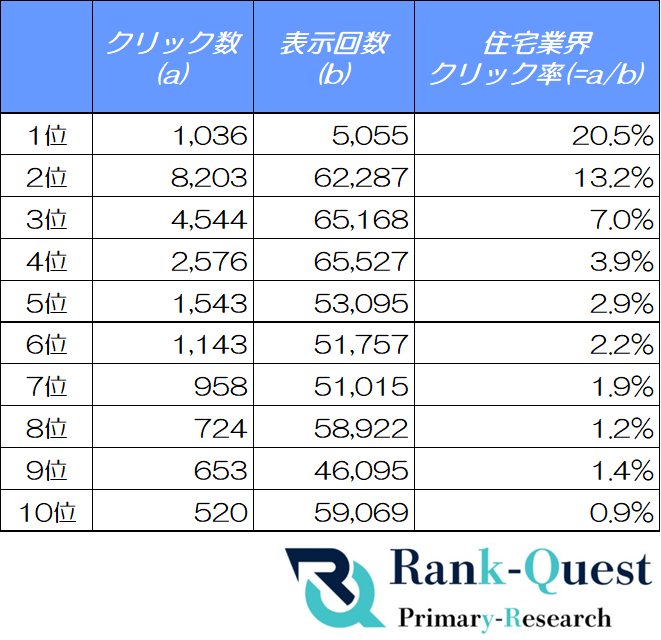 SEO支援実績4,300社超のランクエスト(https://rank-quest.jp/column/column/how-to-seo/ )は、2025年9月、住宅業界のクライアントサイトを対象に「検索順位別クリック率(CTR)」の大規模調査を実施しました。