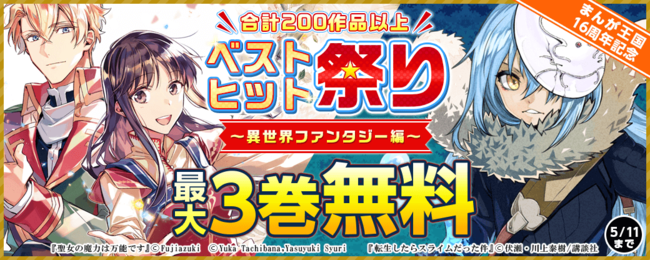 メディア化作品や異世界ファンタジーなど様々なジャンルの人気作品が合計200タイトル以上無料で読める!GWのおうち時間のお供に是非!
