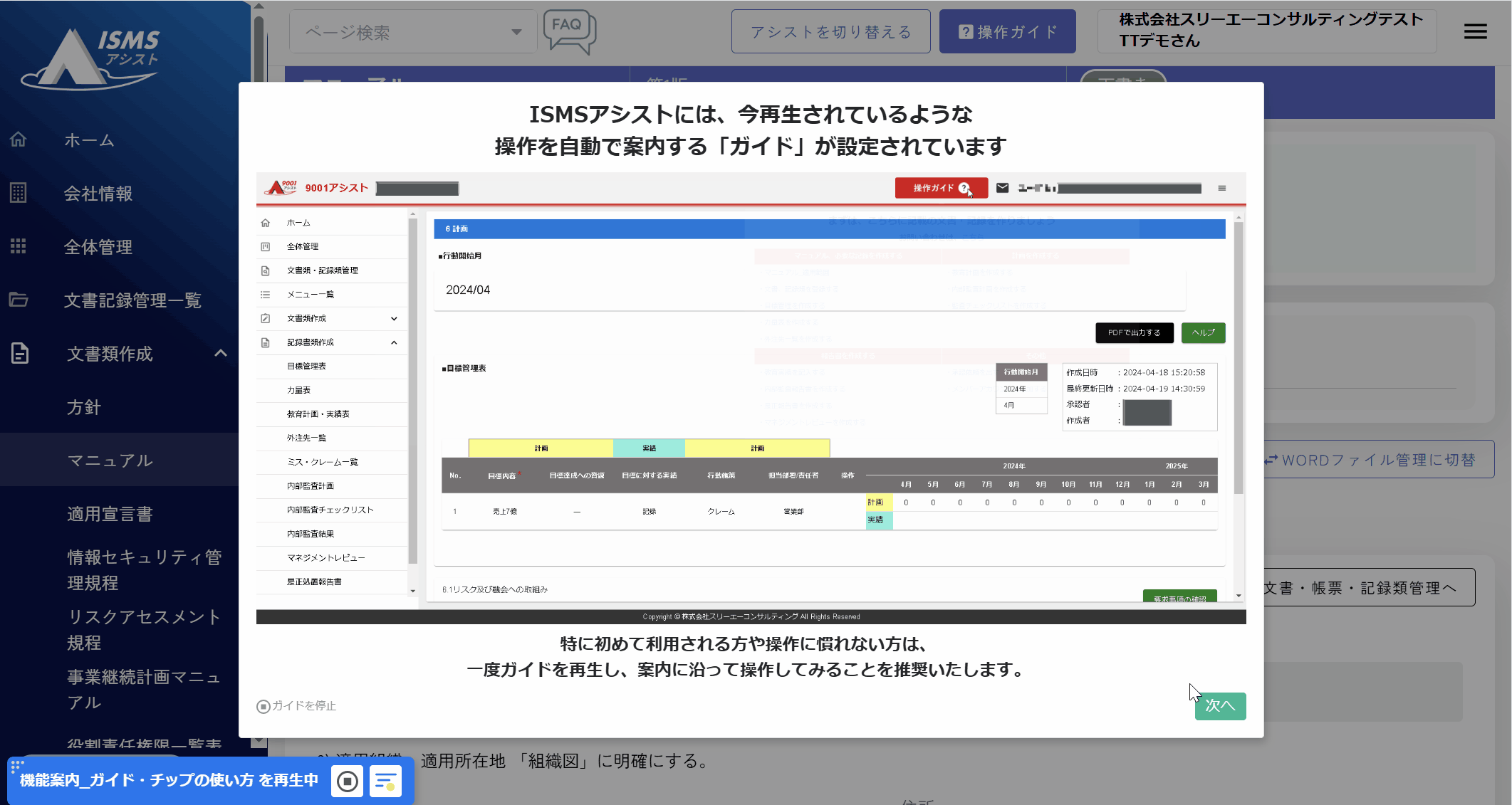 ISMS設定を4つのステップに整理し、各工程に対応した操作ガイドを体系的に提供