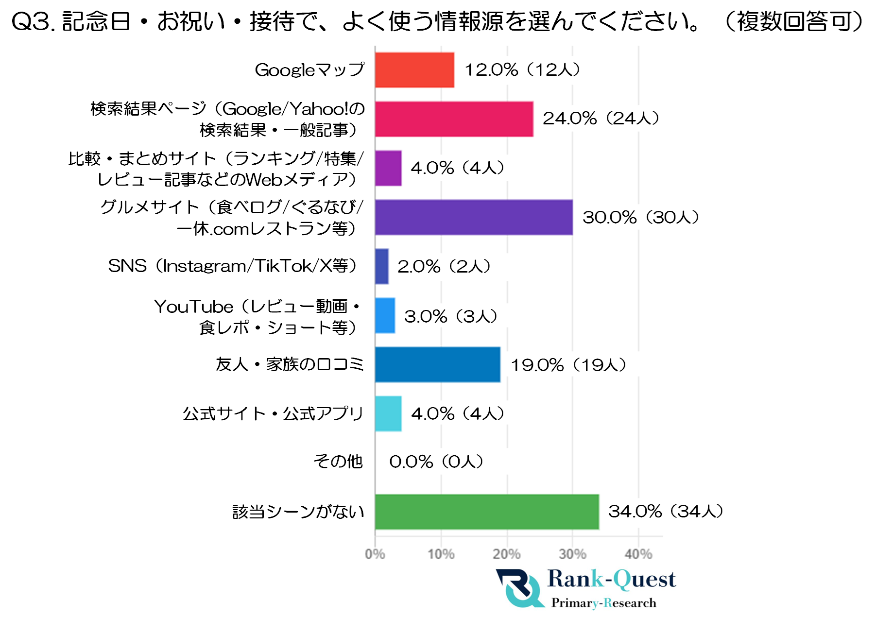 3.記念日・お祝い・接待で、よく使う情報源を選んでください。(複数回答可:注3)