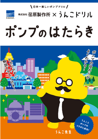 「うんこドリル ポンプのはたらき」は、私たちが安心・安全な暮らしを送るために、さまざまな場所で活躍しているポンプの重要性やその役割をもっと多くの人に知ってほしいという想いから、累計1000万部を突破し小学生に圧倒的な認知を誇る「うんこドリル」シリーズと荏原製作所がコラボして制作した冊子となります。