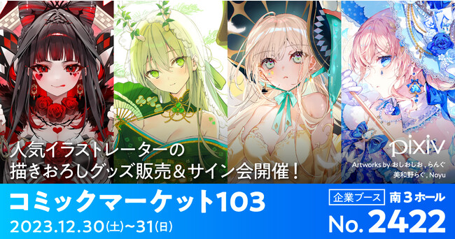 ピクシブ株式会社(本社:東京都渋谷区、代表取締役:國枝信吾、以下ピクシブ)は、2023年12月30日(土)〜12月31日(日)に東京ビッグサイトで開催されるコミックマーケット103にpixivブースとして企業出展し、「Artist MERCH」をテーマに人気クリエイターのイラストにフォーカスしたグッズの販売やサイン会を実施いたします。