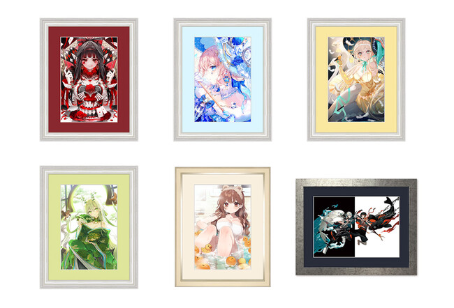高品位美術印刷技術「キャラファイン印刷」で出力された作品を額装し、額のデザイン、マットの色選定からこだわって作られたプレミアムなアート製品を販売します。各イラストレーターの直筆サイン入りの証明書が付属します。